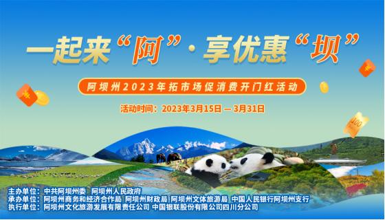 本次活动围绕吃、住、娱、本地生活等多个方面,推出直达消费市场主体的优惠政策,进一步扩大促销“聚集效应”、叠加消费券“乘数效应”、发挥餐饮“拉动效应”,有力的助推全州经济增长。本次活动由阿坝州文化旅游发展有限责任公司、中国银联股份有限公司四川分公司具体执行。2023年3月15日至3月31日,文旅消费券通过微信小程序“阿坝旅游网”和飞猪旅行“阿坝旅游官方旗舰店”发放,通用券和家电券通过云闪付APP发放。